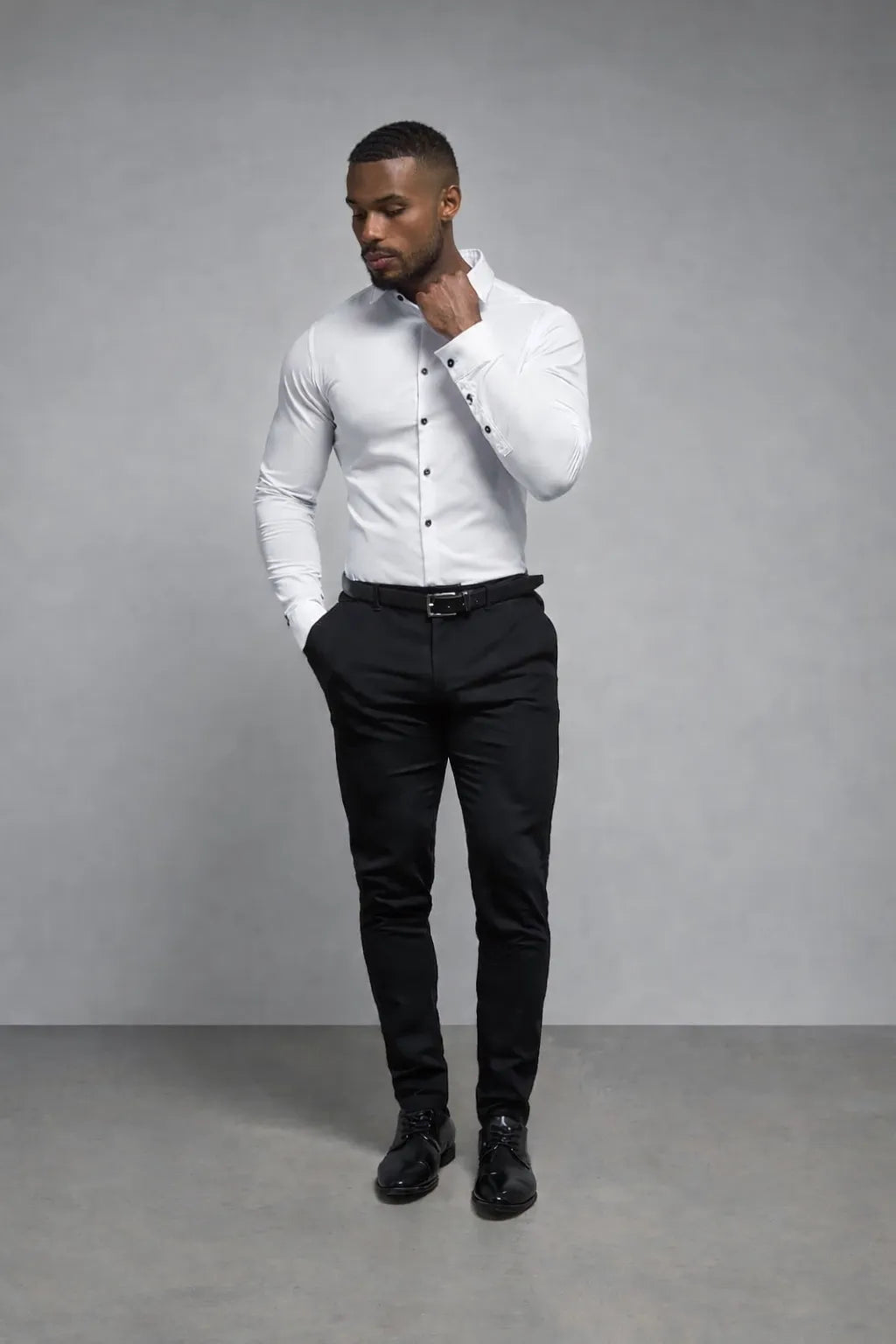 Conheça a Camisa Ultra Tech, a camisa social masculina que une elegância, conforto e tecnologia. Feita com um tecido inovador, ela não amassa, não precisa passar e oferece um caimento impecável.
